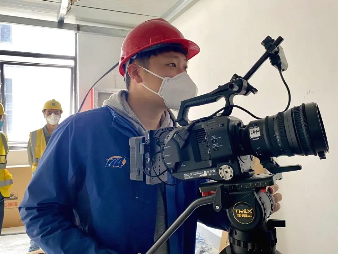 聲像保障第一時間到位。七一四所青年突擊隊員潘偉、張浩偉抵達當晚便投入到拍攝工作中。面對上百個工作面、數千位建筑工人,潘偉、張浩偉發揚敢打敢拼的戰斗精神,在現場架設了8個機位、2架無人機同時進行拍攝。有時為了找到一個合適拍攝角度,兩人克服恐懼在高達八米的屋頂架設拍攝機位,為工程建設拍攝下了近百份寶貴的聲像資料。