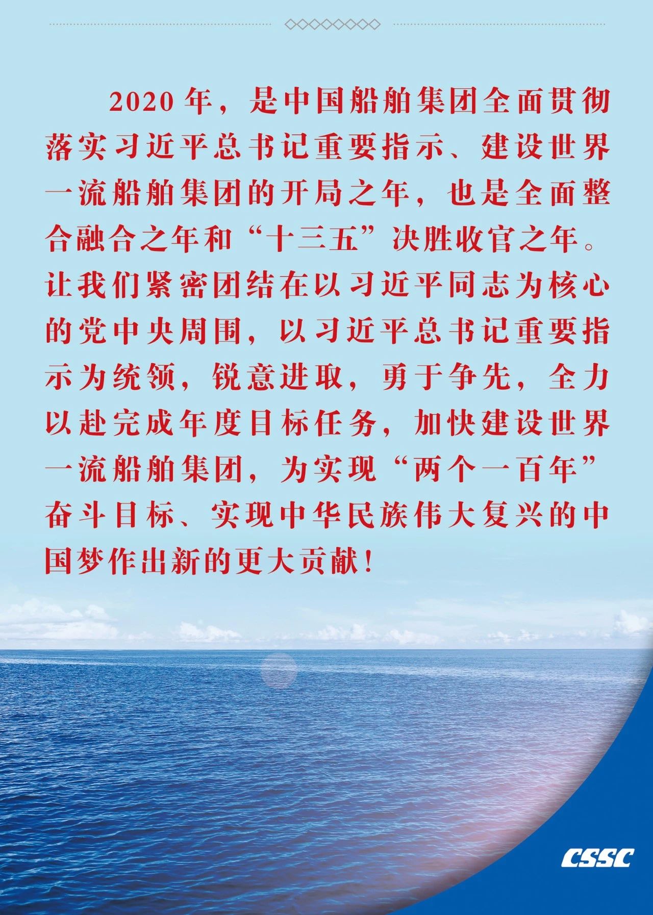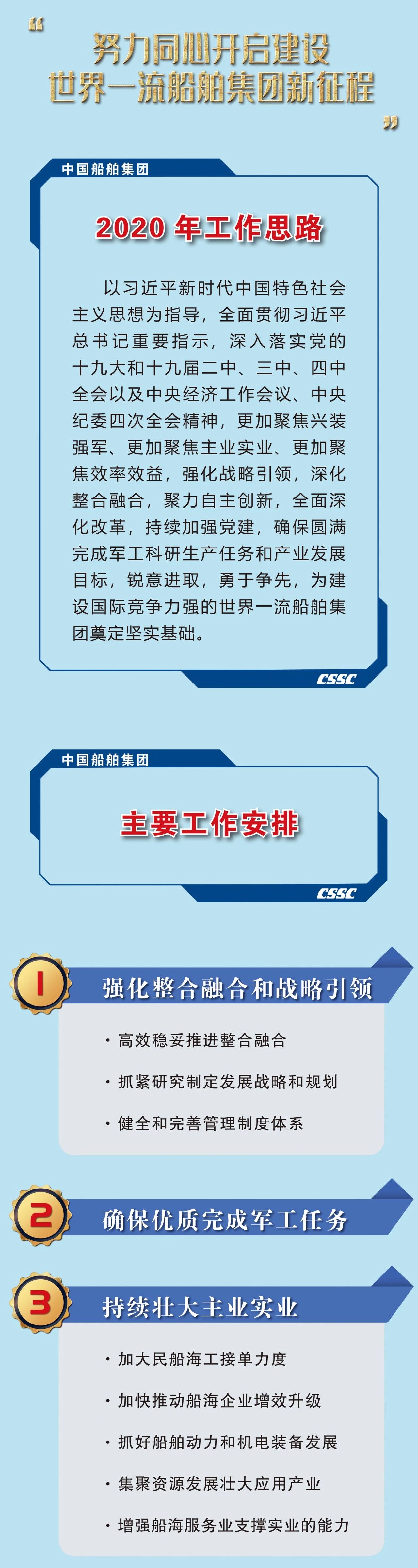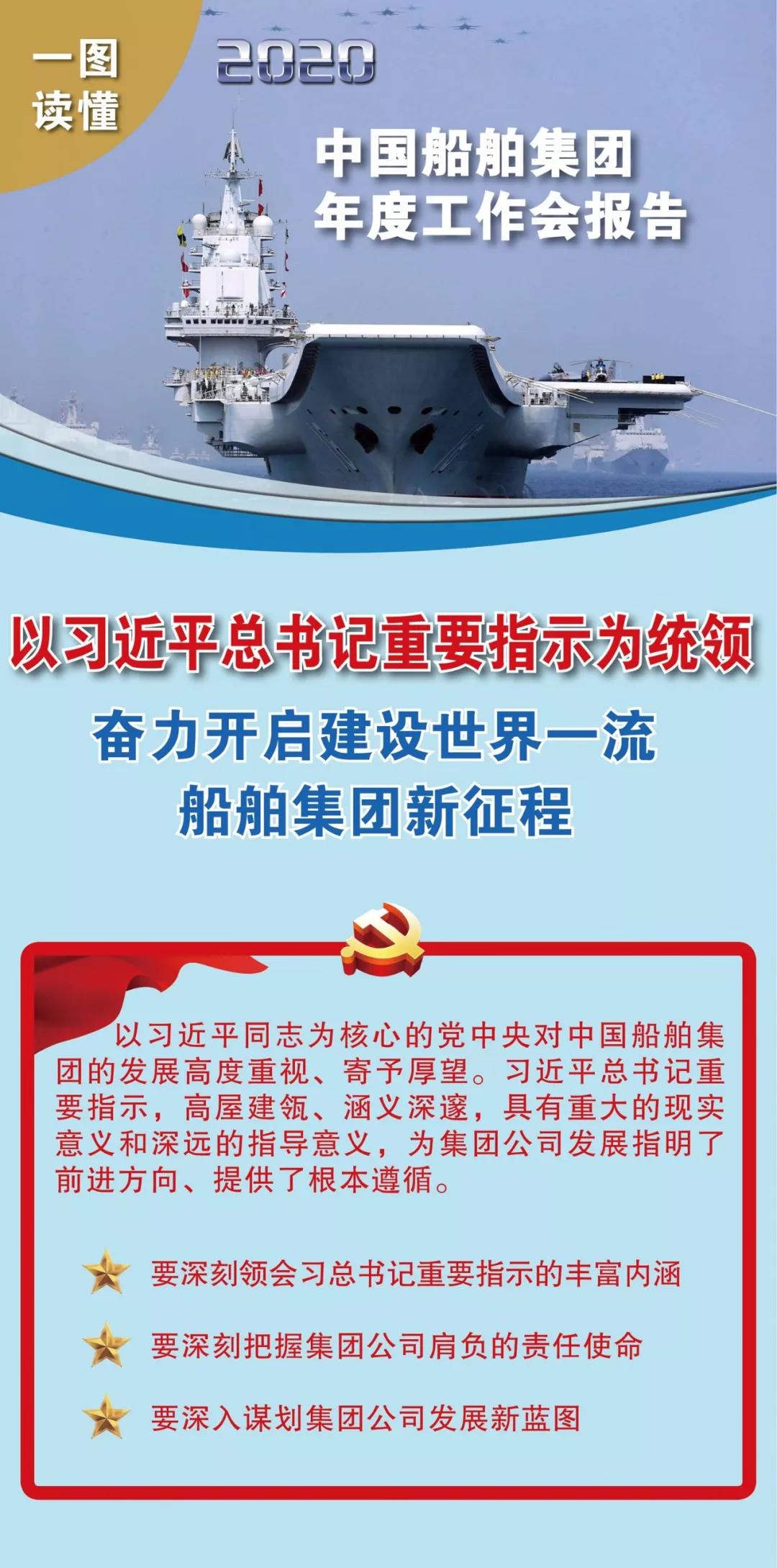 ??1月19日,在中國(guó)船舶集團(tuán)有限公司2020年度工作會(huì)議上,中國(guó)船舶集團(tuán)黨組書(shū)記、董事長(zhǎng)雷凡培作了題為《以習(xí)近平總書(shū)記重要指示為統(tǒng)領(lǐng) 奮力開(kāi)啟建設(shè)世界一流船舶集團(tuán)新征程》的工作報(bào)告。