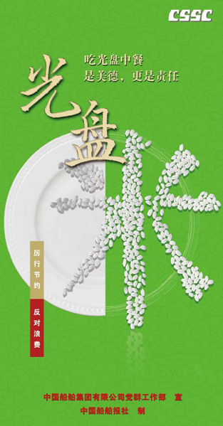 勤儉節約是中華民族的傳統美德,也是中國共產黨的優良作風。為深入貫徹落實習近平總書記重要指示精神,中國船舶集團黨組對制止餐飲浪費作出全面部署,要求集團公司廣大黨員干部在厲行節約、反對浪費方面走在前列、作出表率,大力弘揚勤儉節約的光榮傳統。