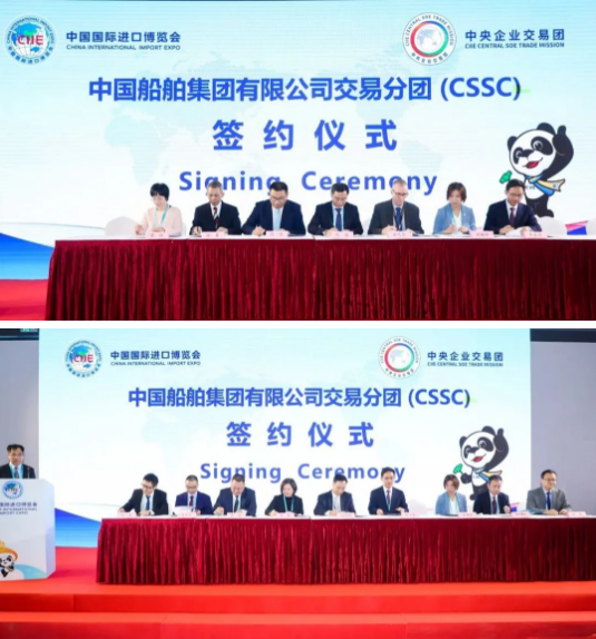 簽約儀式上,中國船舶集團(tuán)所屬廣船國際股份有限公司、中船黃埔文沖船舶有限公司、滬東重機(jī)有限公司、陜西柴油機(jī)重工有限公司、中國船舶物資公司、中國船舶貿(mào)易有限公司、上海外高橋造船有限公司等7家企業(yè)與西門子、ABB、康士伯、瓦錫蘭、日本大發(fā)、韓國現(xiàn)代等19家合作商,共進(jìn)行了23個(gè)項(xiàng)目簽約,簽約總金額共計(jì)1.14億美元,涉及軸帶發(fā)電機(jī)、主發(fā)電機(jī)、主柴油機(jī)、閥門遙控系統(tǒng)、柴油機(jī)零部件、曲軸等產(chǎn)品。另外,中國船舶集團(tuán)參加本屆進(jìn)博會(huì)專業(yè)觀眾觀展活動(dòng)的人數(shù)也較往年有明顯提升。