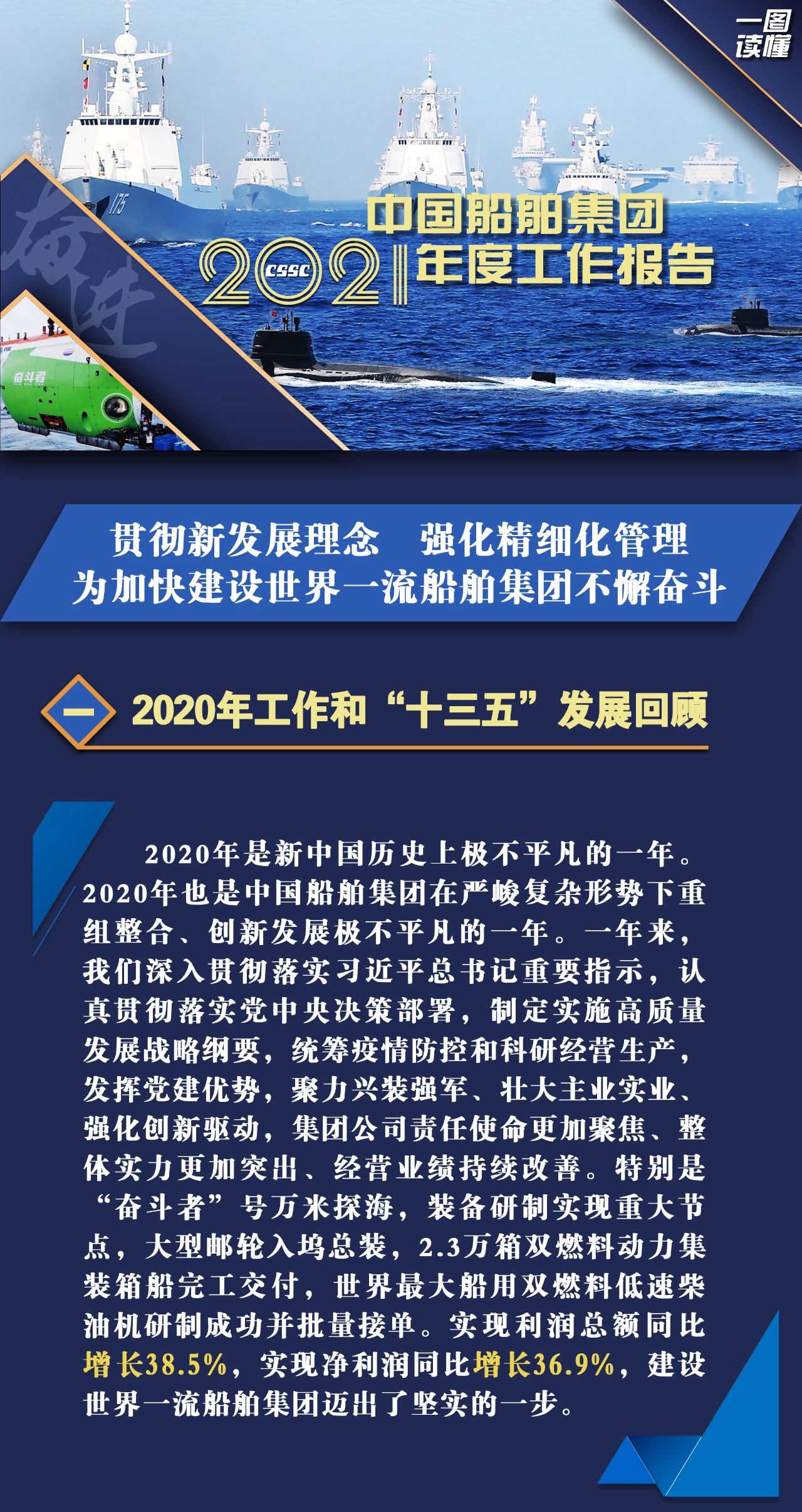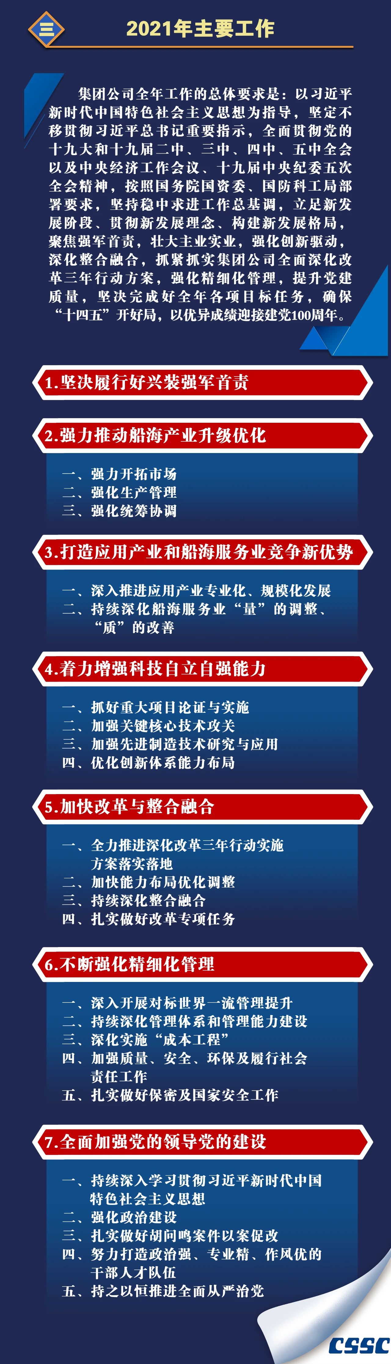 1月27日,在中國船舶集團有限公司2021年度工作會議上,中國船舶集團黨組書記、董事長雷凡培作了題為《貫徹新發展理念  強化精細化管理  為加快建設世界一流船舶集團不懈奮斗》的工作報告。
