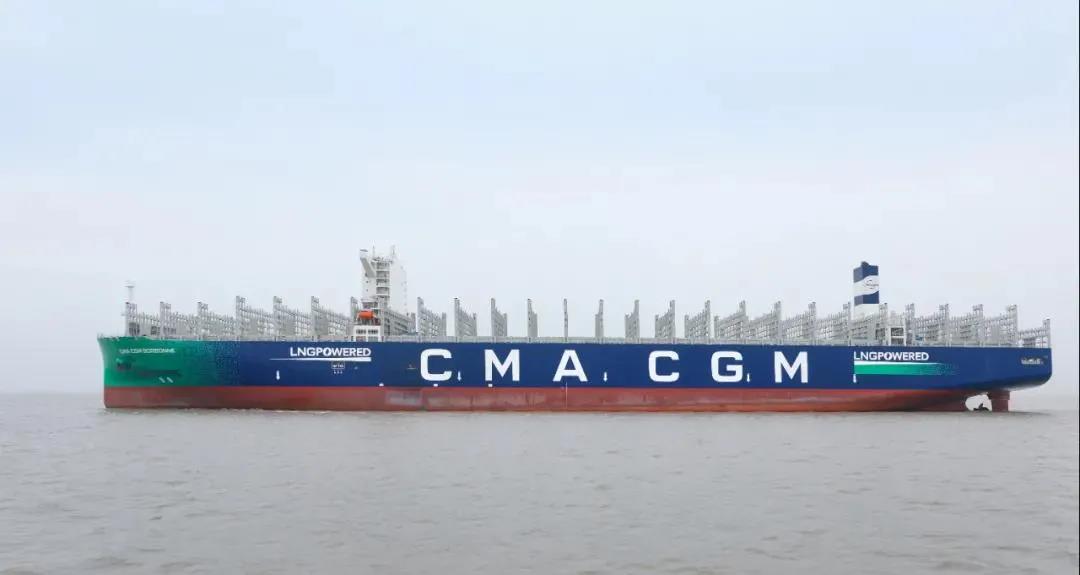 2021年6月29日,中國船舶集團(tuán)自主研發(fā)設(shè)計建造的全球首創(chuàng)最大、最先進(jìn)23000TEU雙燃料動力集裝箱船“達(dá)飛·索邦”號,在中國船舶集團(tuán)旗下滬東中華命名,并交付給法國達(dá)飛海運集團(tuán)。