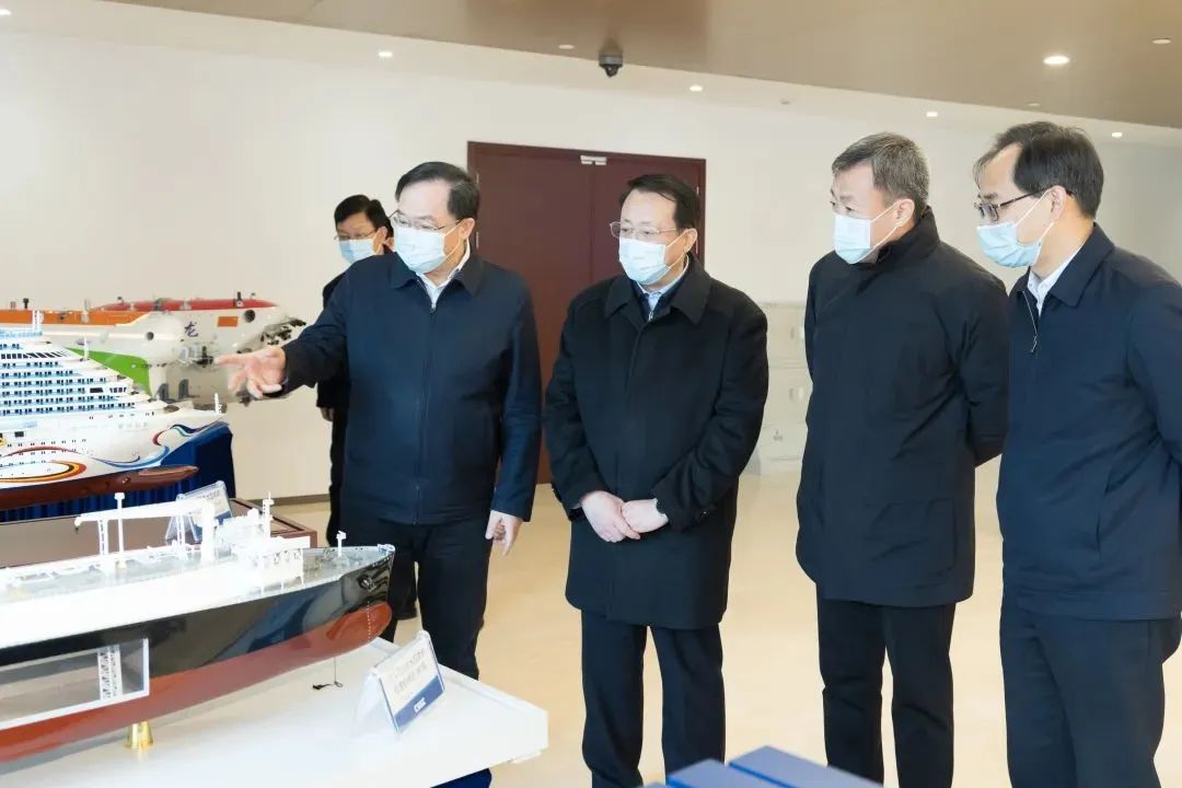 中國船舶集團(tuán)總部于2021年12月遷駐上海,去年經(jīng)營業(yè)績?cè)賱?chuàng)新高。在溫剛、楊金成的陪同下,龔正察看了中國船舶集團(tuán)重點(diǎn)船舶產(chǎn)品模型,深入了解中國船舶集團(tuán)深化科技創(chuàng)新、實(shí)施重大項(xiàng)目,對(duì)標(biāo)國際先進(jìn)、夯實(shí)技術(shù)基礎(chǔ)等方面情況。