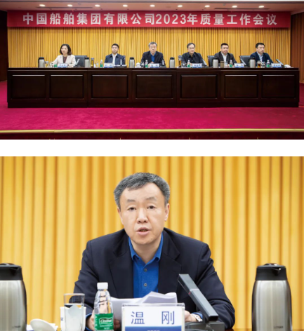 3月3日,中國船舶集團有限公司召開2023年度質量工作會議。中國船舶集團黨組書記、董事長溫剛出席會議并講話,黨組副書記、總經理楊金成主持會議,黨組副書記、董事杜剛宣讀了表彰集團公司2022年度中國船舶質量獎、質量提名獎、質量先進班組和全國優秀質量管理小組的決定,黨組成員、副總經理孫偉在會上作了集團公司2023年度質量工作報告,集團公司在滬黨組成員出席會議。