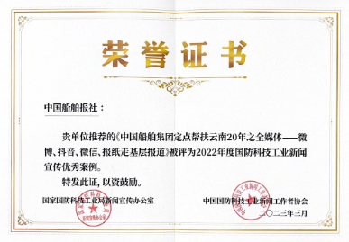 《中國船舶集團定點幫扶云南20年之全媒體——微博、抖音、微信、報紙走基層報道》通過微博、抖音、微信、報紙等全媒體平臺創(chuàng)新形式,將軍工央企宣傳報道助力脫貧攻堅、推進鄉(xiāng)村振興、踐行社會責(zé)任優(yōu)秀成果提升到一個全新的媒體融合報道領(lǐng)域。