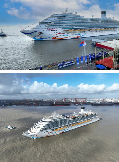 7月17日清晨7時許,隨著中國船舶集團有限公司黨組書記、董事長溫剛一聲令下,白色涂裝、流線型船體、身系“敦煌飛天彩帶”的首艘國產(chǎn)大型郵輪“愛達·魔都號”緩緩駛出中國船舶集團外高橋造船4號碼頭,正式出海試航。集團公司黨組成員、副總經(jīng)理盛紀綱出席試航出征儀式并致辭。