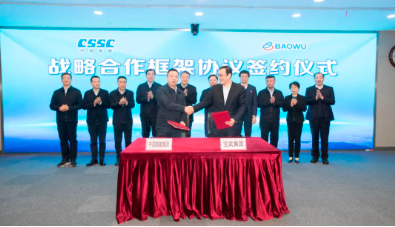 12月21日,中國船舶集團有限公司與中國寶武鋼鐵集團有限公司在上海簽訂戰略合作框架協議。中國船舶集團黨組書記、董事長溫剛,寶武集團黨委書記、董事長胡望明出席簽約儀式。中國船舶集團黨組成員、副總經理盛紀綱,寶武集團黨委常委,寶鋼股份黨委書記、董事長鄒繼新分別代表雙方在協議上簽字。簽約前,雙方就進一步加強溝通交流、深化多領域合作進行交流探討。