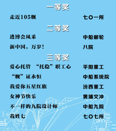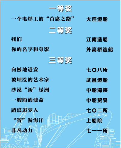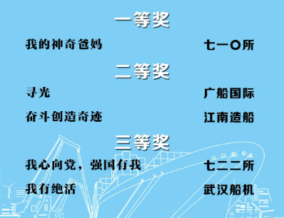 由中國(guó)船舶集團(tuán)黨群工作部指導(dǎo),中國(guó)船舶集團(tuán)新聞宣傳中心/中國(guó)船舶報(bào)社承辦的中國(guó)船舶集團(tuán)第二屆短視頻大賽圓滿落幕。經(jīng)過(guò)前期篩選,網(wǎng)絡(luò)投票,并特邀國(guó)務(wù)院國(guó)資委新聞中心、國(guó)防科工局新聞宣傳中心、中央電視臺(tái)、微博政務(wù)、中國(guó)船舶集團(tuán)黨群工作部專(zhuān)家評(píng)審,大賽最終評(píng)出一等獎(jiǎng)5部,二等獎(jiǎng)10部,三等獎(jiǎng)23部,同時(shí)評(píng)出優(yōu)秀組織獎(jiǎng)單位6家。名單如下,快來(lái)圍觀!