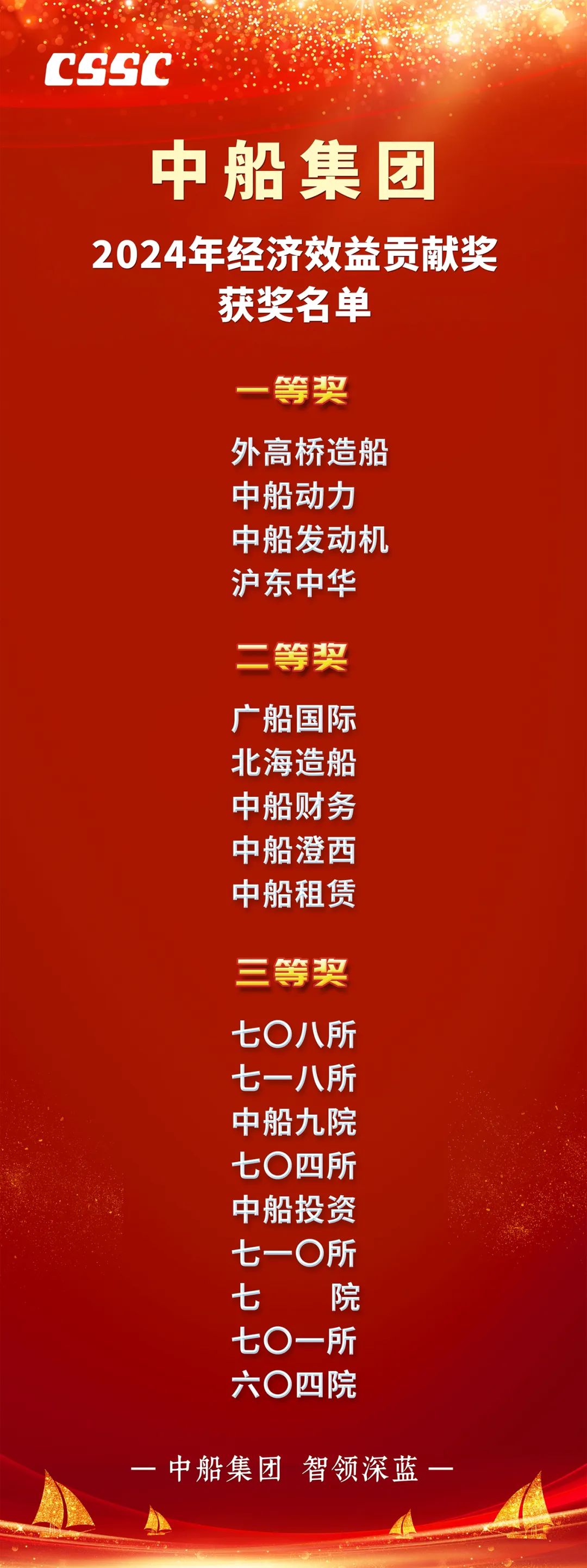2024年,面對復雜多變的外部環境和不確定因素,中國船舶集團有限公司各二級管理單位著力拓市場、強管理、抓改革、增效益,實現了量的合理增長、質的有效提升,整體經濟效益再創新高。為樹立典范,表彰先進,經中船集團黨組研究,決定授予外高橋造船等18家單位2024年中船集團經濟效益貢獻獎。