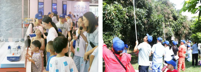 廣船國際舉辦“工廠·家庭心連心”員工家屬開放日活動。93名員工家屬走進企業,現場了解造船人筑夢深藍的火熱場景。本次活動設置了保學護航、船模搭建、采摘龍眼等多個環節,既有親子活動,又能寓教于樂。大家在觸摸海洋強國脈搏中增進理解,在共享發展成果中凝聚共識。員工家屬通過參觀公司展廳和觀看視頻等形式,了解中國船舶工業發展史,為員工堅守在海洋強國建設崗位上而感到驕傲和自豪。