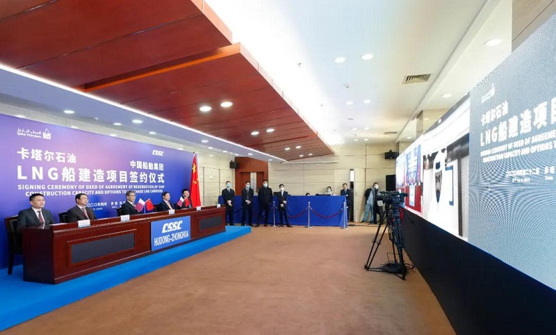 ????2019年4月22日,卡塔爾石油委托其子公司卡塔爾天然氣公司就“百艘LNG船計劃”進(jìn)行招標(biāo)。中國船舶集團(tuán)高度重視、精心準(zhǔn)備、積極溝通,組織旗下滬東中華聯(lián)合中國船舶工業(yè)貿(mào)易有限公司(CSTC)全力推進(jìn)各項競標(biāo)工作。經(jīng)過一年的不懈努力和先后四輪談判,中國船舶集團(tuán)最終在激烈的國際競爭中勝出,為卡塔爾石油建造下一代LNG船,彰顯了中國船舶集團(tuán)在高端海洋裝備領(lǐng)域的強(qiáng)大實力。此次簽約也將為中國船舶集團(tuán)完成全年目標(biāo)任務(wù)奠定堅實基礎(chǔ)。