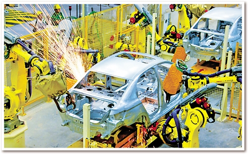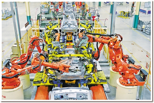 日前,記者在東風汽車公司旗下神龍汽車公司成都工廠焊裝車間看到,占地面積約10個足球場的車間儼然就是一個“機器人王國”:442臺各種機器人都在忙碌著,所有點焊、弧焊、激光焊、螺柱焊、涂膠、包邊、鉚接、部件搬運等“重活、累活”全部由機器人自動完成。焊裝分廠廠長孫繼勝介紹說,除442臺機器人外,車間還有另外一個“撒手锏”??六面體轉(zhuǎn)臺設備。“原來生產(chǎn)1個車型要建6條生產(chǎn)線,現(xiàn)在1條生產(chǎn)線就可以生產(chǎn)6種車型。”孫繼勝說。