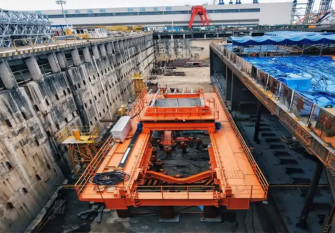 ????深中通道沉管隧道鋼殼由中國(guó)船舶集團(tuán)旗下廣船國(guó)際、黃埔文沖承建。