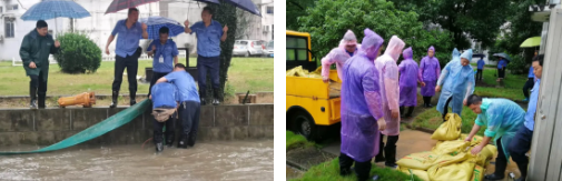 中船九江公司接到九江市防汛指揮所通知后,第一時間連夜組織應急分隊投入防汛抗洪戰斗,安排公司及所屬各單位人員在九江市八里湖新開河西堤、彭澤芙蓉墩鎮芙蓉村下芳湖內堤、定點扶貧點柴桑江洲6號村等責任段進行24小時值班值守。