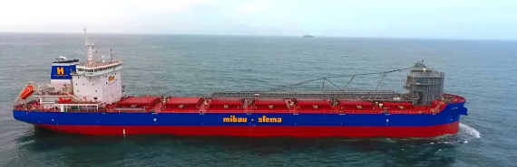 該船船長190米,型寬29米,設(shè)計(jì)吃水10.5米,全船配置先進(jìn),配備單機(jī)可調(diào)槳CPP、抱軸式軸帶發(fā)電機(jī)、大功率艏艉側(cè)推、貝克舵、混合式脫硫系統(tǒng)和一套具有5500噸/小時(shí)卸貨能力的高效自卸系統(tǒng)。