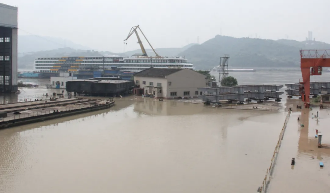 8月19~20日,長(zhǎng)江洪峰先后到達(dá)東港船舶和川船重工。東港船舶船臺(tái)碼頭、104廠房、鋼結(jié)構(gòu)新堆場(chǎng)、103總拼廠房被淹。川船重工2-4、2-5、2-6室內(nèi)船臺(tái),涂裝廠房、主機(jī)庫(kù)、變壓站、下水斜架絞車(chē)房等主要生產(chǎn)場(chǎng)地被淹,廠房?jī)?nèi)進(jìn)水已達(dá)1米深。