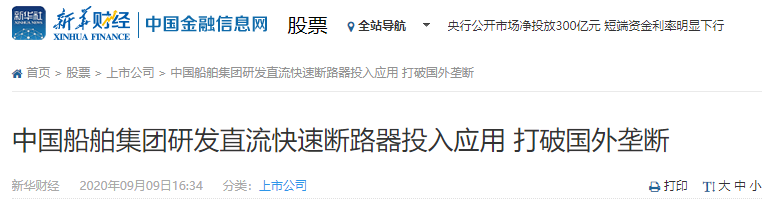 讓我看看最近是誰,又上了新華財經新聞。是他,中國船舶集團七一二所“小小”斷路器,電路安全“守護神”。
