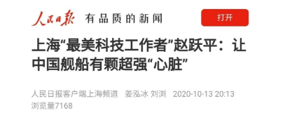 ????中國船舶集團(tuán)七〇四所首席專家趙躍平,獲評2020年上海地區(qū)“最美科技工作者”。