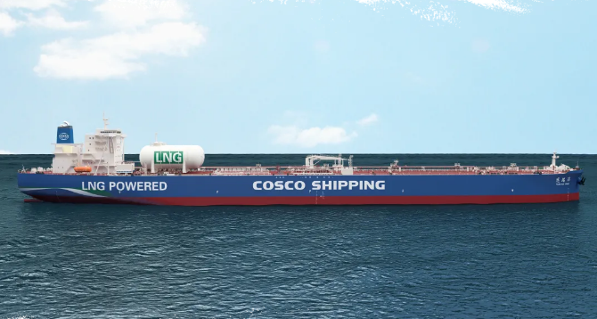 5月28日,中國(guó)船舶集團(tuán)旗下大船集團(tuán)為中遠(yuǎn)海運(yùn)集團(tuán)建造的全球首制雙燃料超大型原油船(VLCC) 液化天然氣(LNG)燃料儲(chǔ)艙——2x3500m3C型LNG低溫儲(chǔ)艙成功交付。