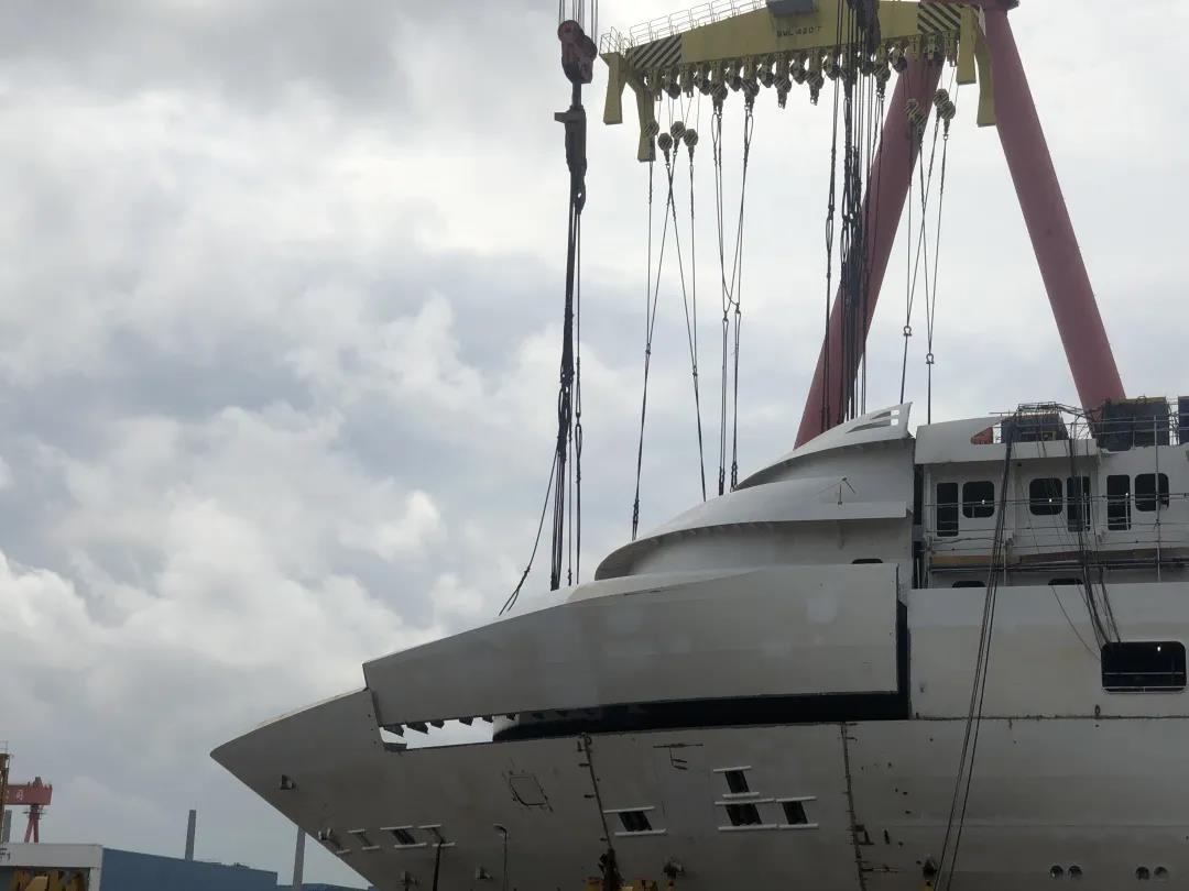 這標(biāo)志著國產(chǎn)首制大型郵輪正式開啟艏部吊裝模式,9月份將實(shí)現(xiàn)全船結(jié)構(gòu)貫通這一里程碑節(jié)點(diǎn)。