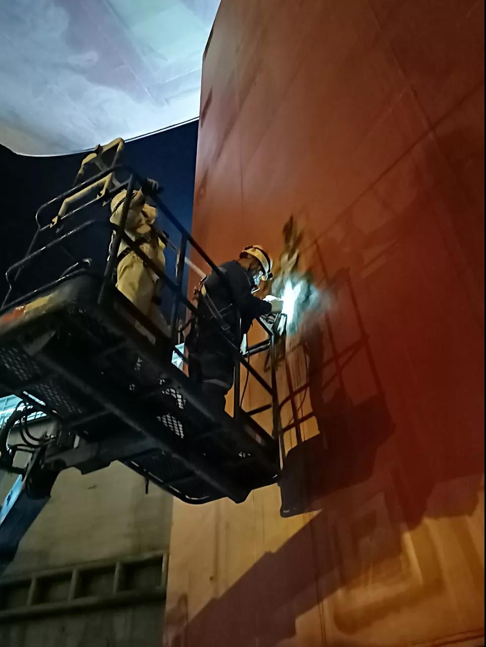 為保證出塢節點,無損檢測人員在國慶節加班加點對舵葉封板焊縫磁粉檢測。