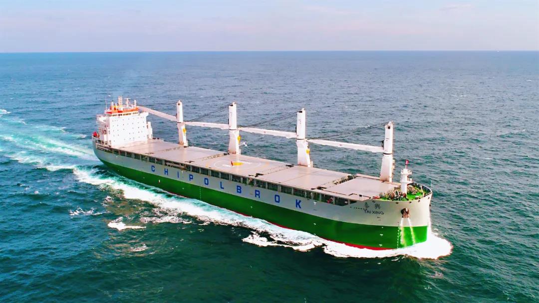 △ 62000噸重吊多用途船“泰興”輪,可靈活裝載各種尺寸重大件設備貨、紙漿貨以及各類固體散貨等,也可裝載集裝箱。