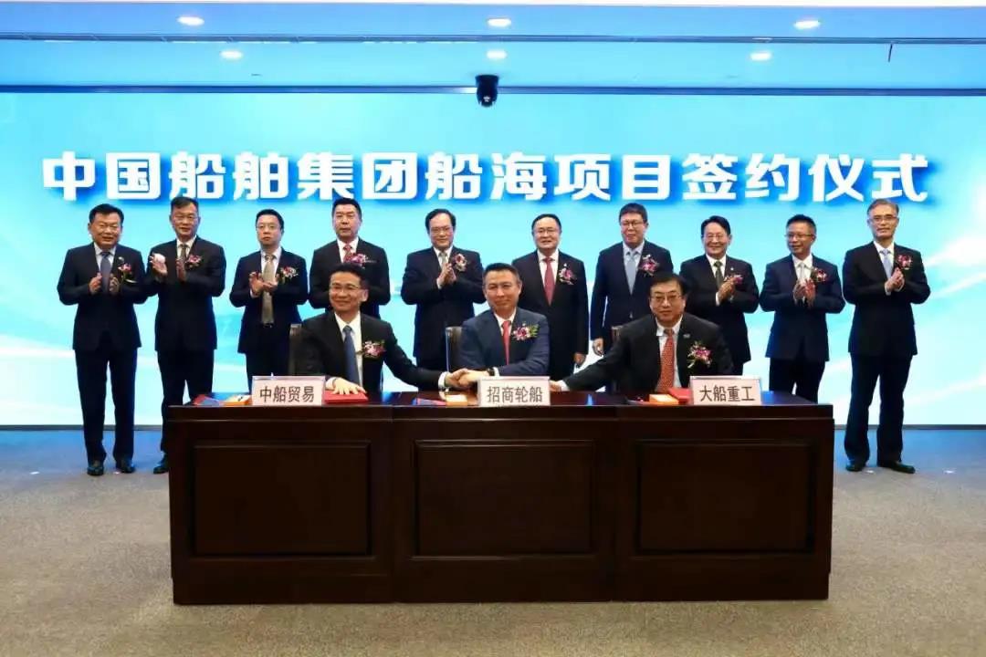 12月17日,在中國船舶集團船海項目集中簽約儀式上,大船集團聯合中船貿易與招商局集團旗下招商輪船簽署1+1艘大型LNG運輸船合作意向書。