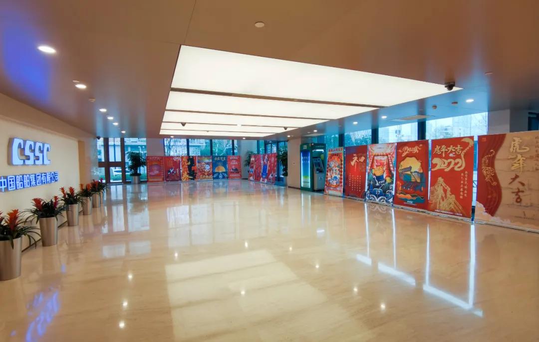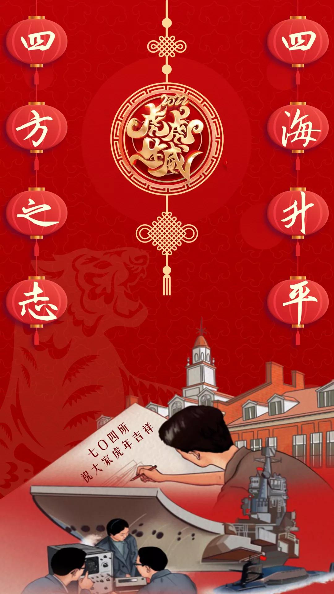 以中國紅為主色調,運用傳統剪紙手法結合鏤空設計,寓意揭開虎年新篇章,映入眼簾的艦艇乘風破浪、浩浩蕩蕩,傳遞系統工程研究院/中船電科建設強大海軍的信心和決心!