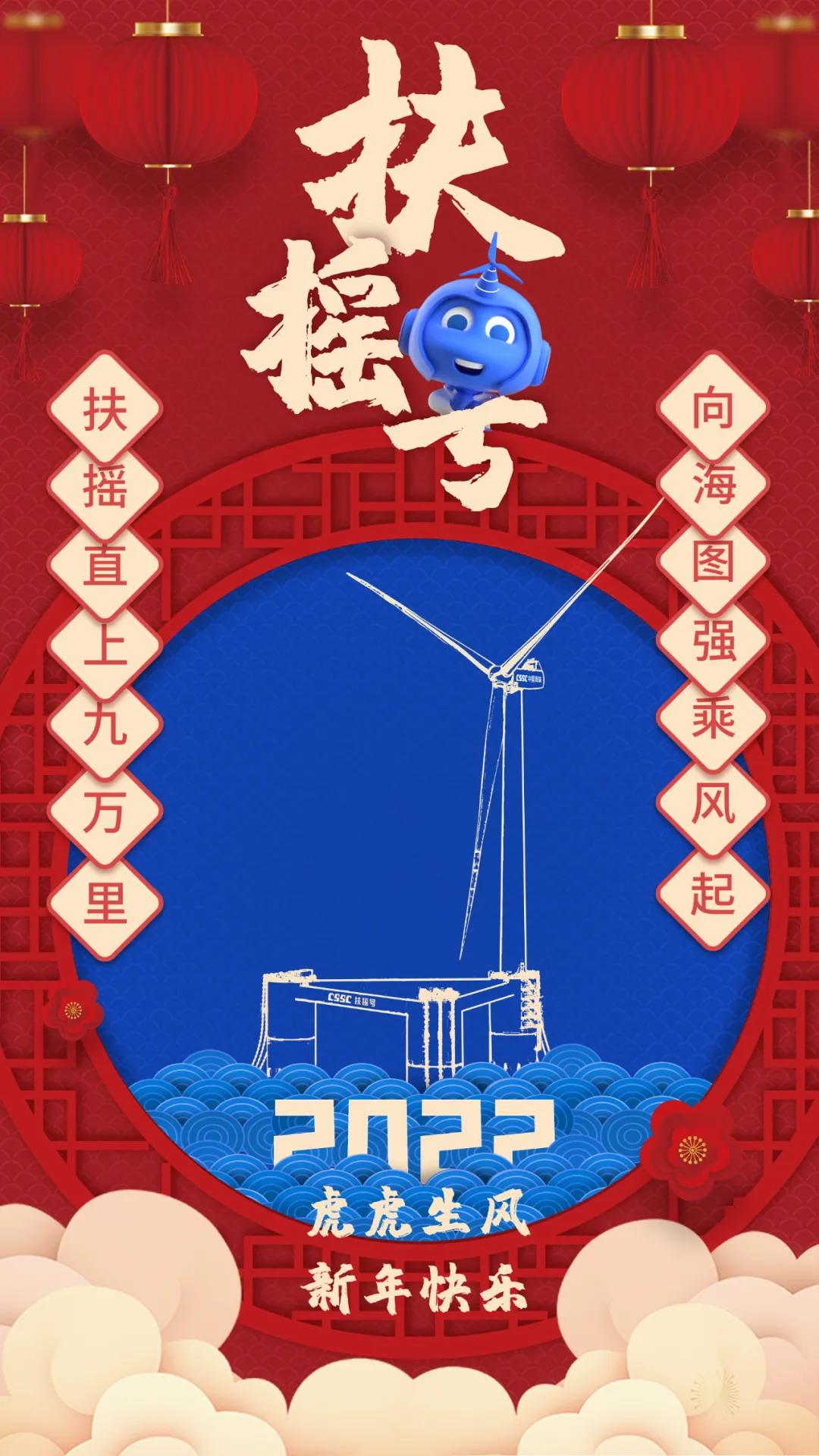 海報主題以中國海裝研制的核心產品——國內首臺深遠海浮式風電機組“扶搖號”為重點,同時以中國海裝IP形象——海寶作為點綴,突出中國海裝創新引領、向海圖強的決心與信心。