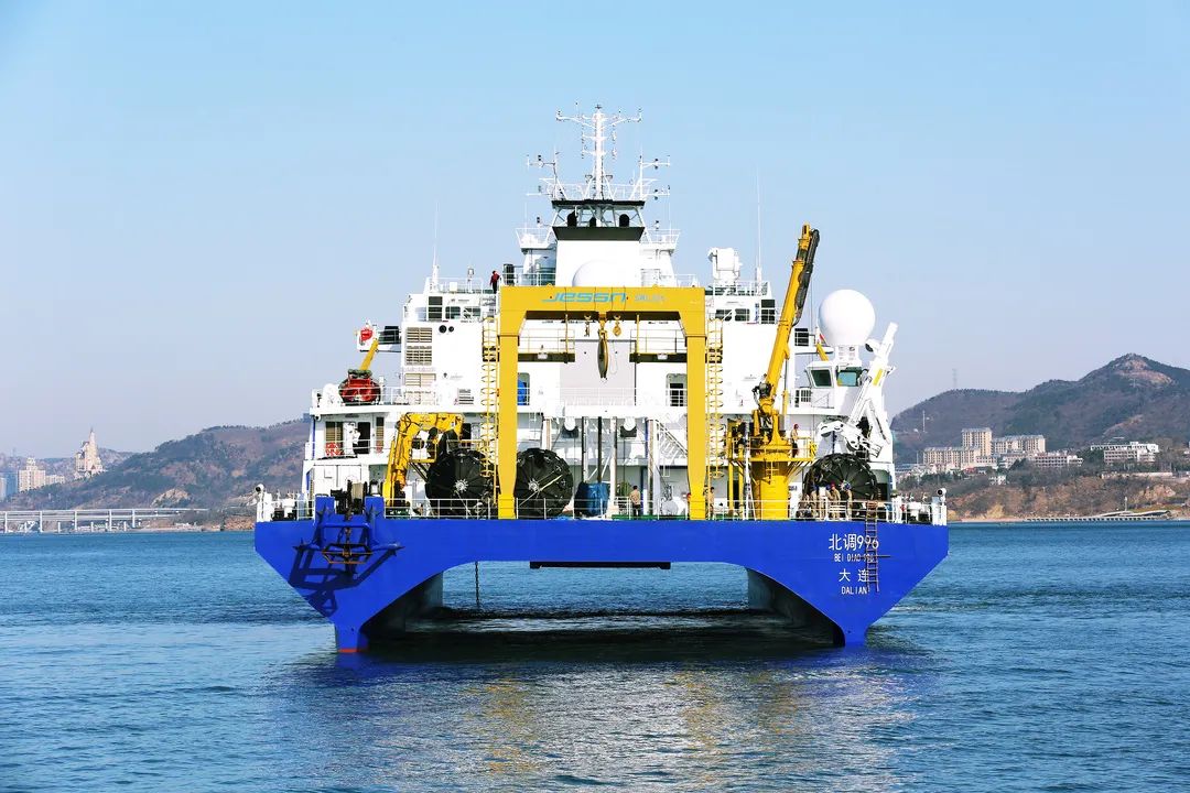 小水線面雙體船是一種水線面積小,且由兩個潛水體和一個水上箱體,中間有兩個流線型支柱連接起來的船舶。該船型耐波性好,能夠很好地解決深海作業(yè)浪大、波峰高等問題,利于在深海開展試驗工作。該船于2019年8月26日開工,2021年3月20日下水,2022年3月23日完工,歷時2年零7個月時間。該船總長99.8米,型寬32米,吃水7.5米,型深13.2米,航速15節(jié),排水量6700噸。