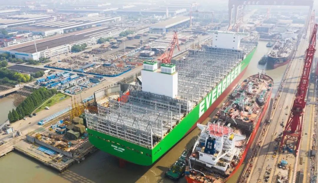 本次出塢的三艘船分別是江南造船為長榮集團(tuán)建造的24000TEU超大型集裝箱船,為西南海運(yùn)建造的99000立方米超大型乙烷運(yùn)輸船,為萬華建造的86000立方米超大型液化氣運(yùn)輸船。起浮的兩艘半船則分別為99000立方米超大型乙烷運(yùn)輸船后續(xù)船以及86000立方米超大型液化氣運(yùn)輸船后續(xù)船。