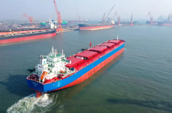 近日,大連造船下屬山船重工為中信金租公司建造的6.5萬噸散貨船3號船試航凱旋。