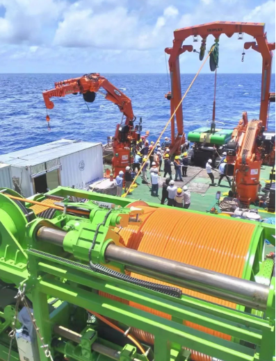 中國船舶集團(tuán)七〇四所研制的深水重載布放回收絞車助力“開拓二號”布放回收全流程作業(yè),為其刷新紀(jì)錄等一系列復(fù)雜的深海采礦試驗(yàn)提供技術(shù)支撐。