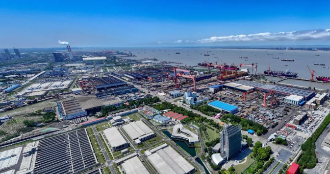 近年來,為實現資源節約和高效利用,外高橋造船持續推進“屋頂分布式光伏建設”“智慧空壓站改造”“能耗在線監測系統”等一系列節能重點工程。同時,著力推進低碳/零碳能源技術的研究,加強綠色低碳產品研發和推廣,研制交付了多款多型液化天然氣(LNG)雙燃料動力船舶,相繼開發了甲醇、氨等雙燃料動力綠色船舶系列。