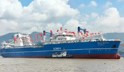 南極磷蝦捕撈加工船“福遠(yuǎn)漁9199”排水量約19000噸,是國內(nèi)最大一艘連續(xù)真空泵吸的捕撈及加工一體化漁船,也是我國首批自主研發(fā)的專業(yè)型南極磷蝦捕撈加工船,主要性能指標(biāo)處于世界同類船舶領(lǐng)先水平,投入使用后將顯著提升我國在南極作業(yè)水域的捕撈加工能力,為我國“藍(lán)色糧倉”建設(shè)再添重器。