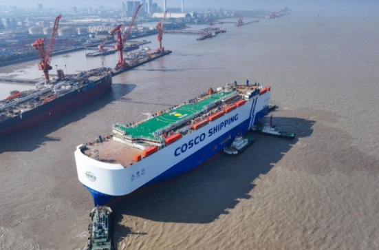 12月2日,外高橋造船1號船塢迎來8600車液化天然氣(LNG)雙燃料動力汽車運輸船(PCTC)和11.4萬噸阿芙拉型成品油輪的同日出塢,不僅達成首制PCTC船塢周期100天既定目標,在民船建造領域繼續保持“加速度”,而且也標志著該公司新船型和常規船型同塢同節拍生產取得新突破。
