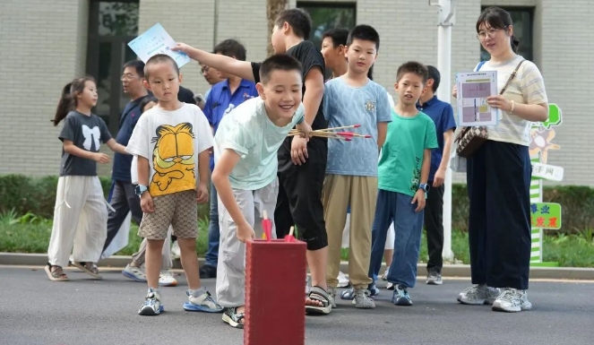 在講解員引導(dǎo)下,家屬們先后走進(jìn)七二五所所部科技展廳與第六研究室,系統(tǒng)了解研究所六十余載發(fā)展歷程、研究領(lǐng)域、前沿技術(shù)攻關(guān)。從國(guó)家科技進(jìn)步獎(jiǎng)獲獎(jiǎng)項(xiàng)目到“大國(guó)重器”關(guān)鍵材料突破,家屬們深刻感受到“艱苦創(chuàng)業(yè)、勇攀高峰”的奮斗者文化傳承。在親子活動(dòng)區(qū),“趣味投壺”“瘋狂九宮格射門”“百步穿楊”“急速投籃”等4項(xiàng)趣味游戲,瞬間點(diǎn)燃了職工與家屬們的參與熱情,大家紛紛組隊(duì),積極投入到游戲中,通過趣味互動(dòng),進(jìn)一步加深彼此間的理解與默契,情感也在歡聲笑語中得到了升華。