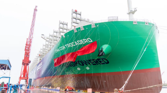 2017年9月,中國船舶集團與法國達飛集團簽署九艘23000TEU超大型集裝箱船建造合同,截至目前,已交付八艘。 該系列船均由中國船舶集團七〇八所自主研發設計,是首次引入液化天然氣雙燃料系統的超大型集裝箱船。因為它又大又環保,是名副其實的海上“巨無霸”,我們都叫它“綠巨人”!