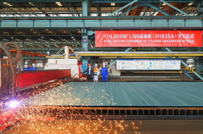 在喜迎黨的二十大之際,中國船舶集團旗下滬東中華生產(chǎn)捷報頻傳。10月14日,滬東中華為中國石油國際事業(yè)有限公司建造的17.4萬立方米大型液化天然氣(LNG)運輸船、為法國達飛海運集團建造的全球首批1.3萬TEU液化天然氣(LNG)雙燃料動力超大型集裝箱船同日開工,還有一艘為上海申能集團建造的8萬立方米LNG船主船體實現(xiàn)結(jié)構(gòu)成型。至此,在短短的一周時間里,滬東中華共實現(xiàn)了一船出塢、一船入塢、一船完成試航、一船主船體實現(xiàn)結(jié)構(gòu)成型、兩船開工等六大生產(chǎn)節(jié)點,建造能級和效率不斷提升,掀起了“奮戰(zhàn)第四季度、勇奪全年目標(biāo)”的生產(chǎn)經(jīng)營新高潮。