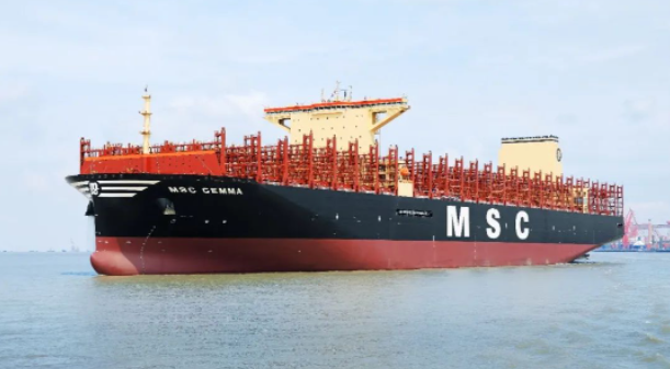 5月22日,中國船舶集團旗下滬東中華聯合中船貿易為工銀金融租賃有限責任公司和瑞士地中海航運公司(MSC)建造的全球最大級別24116TEU超大型集裝箱船系列3號船“地中海 吉瑪”號(MSC GEMMA),在中船長興造船基地命名交付。這不僅是滬東中華在短短75天時間里完工交付的第3艘同系列船,進一步穩固了其世界超大型集裝箱船建造領域的領軍地位,也成就了MSC成為全球第一家運力突破500萬TEU大關的集裝箱航運公司。