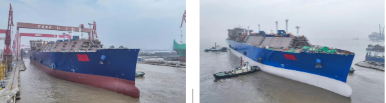 近日,在中船長興造船基地中國船舶集團旗下滬東中華2號船塢,首次呈現(xiàn)了4艘174000立方米大型液化天然氣(LNG)運輸船同塢建造,其中2艘同日出塢、2艘半船起浮的盛景。
