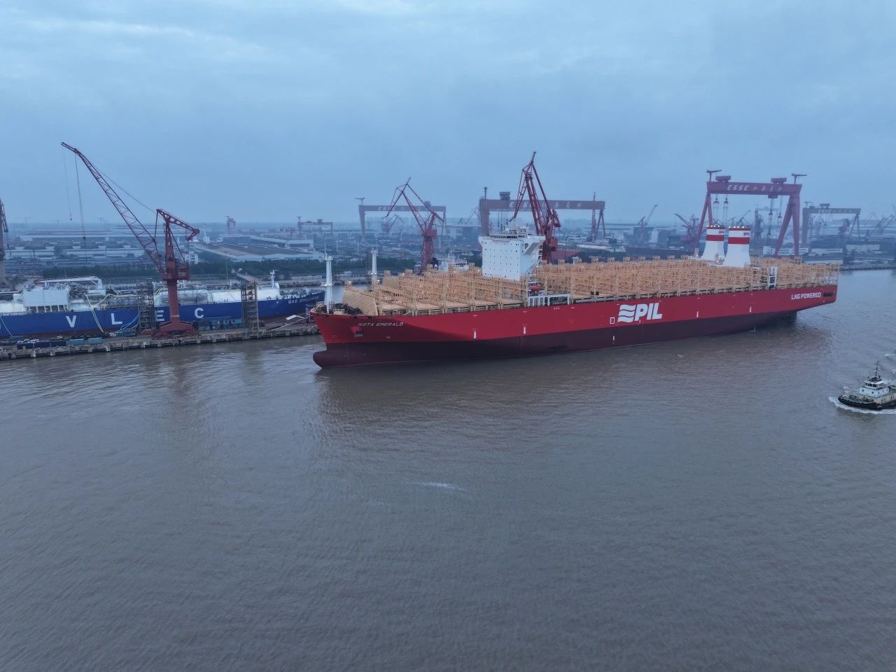 該批系列船是江南造船自主研發(fā)設(shè)計(jì)的鯤系列(KUN-14N)大型集裝箱船,是一型高效、綠色、節(jié)能環(huán)保的船型。該型船選用MARK Ⅲ型燃料艙,可同時(shí)兼容氨燃料;搭載中國(guó)船舶集團(tuán)下屬WinGD研發(fā)的全球新一代智能控制廢氣再循環(huán)(iCER 2.0)系統(tǒng)雙燃料主機(jī),可以通過(guò)特定算法自動(dòng)跟蹤并動(dòng)態(tài)調(diào)整空氣和燃?xì)獗壤?,和以往主機(jī)機(jī)型相比,氣體模式下的甲烷逃逸可降低50%,減少28%以上的溫室氣體排放。