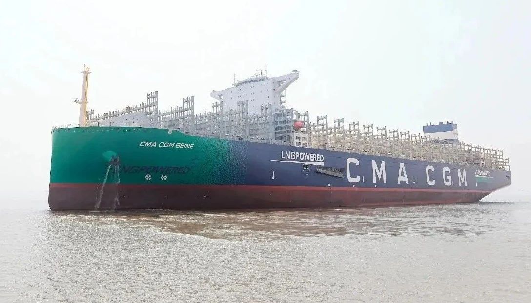 該船是法國達飛集團在滬東中華訂造的4艘24000TEU級雙燃料動力集裝箱船的首制船,也是滬東中華繼2020年9月完工交付的全球首創(chuàng)23000TEU雙燃料動力集裝箱船的升級優(yōu)化型集裝箱船。該船總長399米,可一次裝下23872個集裝箱,包括2200個標準冷藏集裝箱,最大堆箱層數達24層,相當于22層樓高度,是新一代海上“綠巨人”和“帶貨王”。