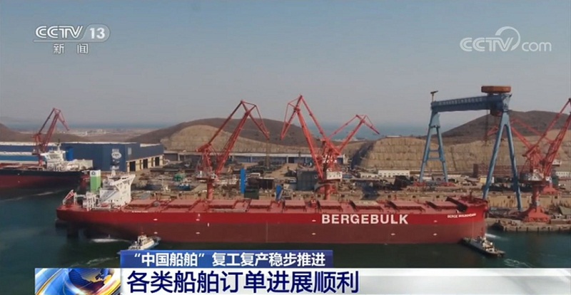 ????眼下全國在做好疫情防控的同時,復(fù)工復(fù)產(chǎn)的速度不斷加快,我國經(jīng)濟也呈現(xiàn)加速回暖態(tài)勢。我國是世界第一造船大國,船舶訂單一直穩(wěn)居全球第一,今年以來,中國船舶工業(yè)的生產(chǎn)和研發(fā)也受到疫情的一定影響。復(fù)工復(fù)產(chǎn)以來,我國船舶工業(yè)的生產(chǎn)進展如何?下面就和記者一起走進各大船廠去看看。