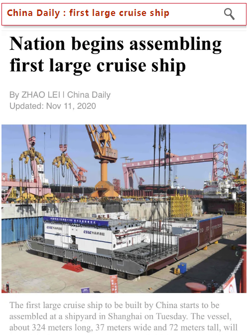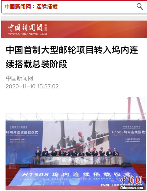 昨天(11月10日),中國船舶集團旗下外高橋造船建造的中國首制大型郵輪,迎來里程碑節點轉入塢內連續搭載總裝新階段的消息,在業界引起廣泛關注,也再次成功吸引新華社、央視新聞等各大央媒的目光!