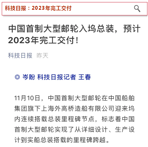 作為設計建造難度最高的船型之一,大型郵輪是我國目前唯一沒有攻克的 高技術、高附加值船舶產品是名副其實的巨系統工程,中國船舶集團將舉全集團之力迎難而上、砥礪前行,全力推進這項國際化的巨系統工程。