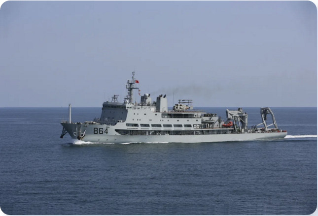 864艦是我國自主設計建造的首艘最新型綜合潛艇救援艦。該艦于2010年初服役,其主要任務是對失事潛艇實施援潛救生,還可以執行各種潛水勤務及協助打撈作業,以及對失事水面艦船和落水人員進行救援等。