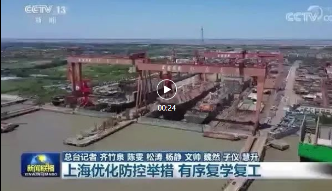 新聞聯(lián)播聚焦上海優(yōu)化防控舉措,加快推動(dòng)復(fù)工復(fù)產(chǎn),點(diǎn)贊中國(guó)船舶集團(tuán)旗下三大船企都實(shí)現(xiàn)復(fù)工復(fù)產(chǎn)。