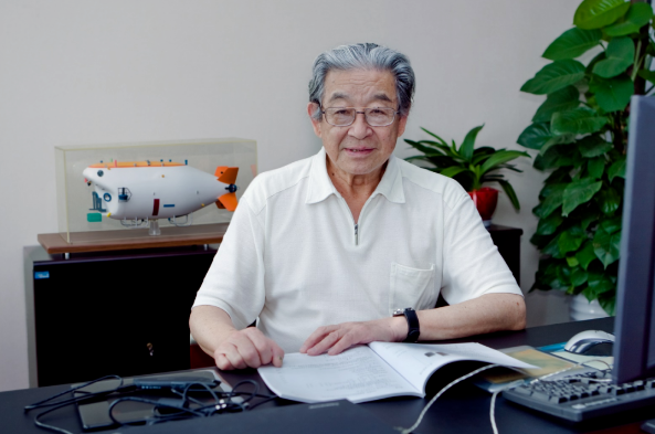 今年87歲的徐芑南仍然每天到中國船舶科學研究中心上班。辦公樓搬了新址,辦公室換過幾間,不變的是書架上的潛水器模型:蛟龍號、深海勇士號和奮斗者號。它們默默地陪伴著徐芑南的每次搬家,也排列出了他“向海而行、勇往直‘潛’”的一生。