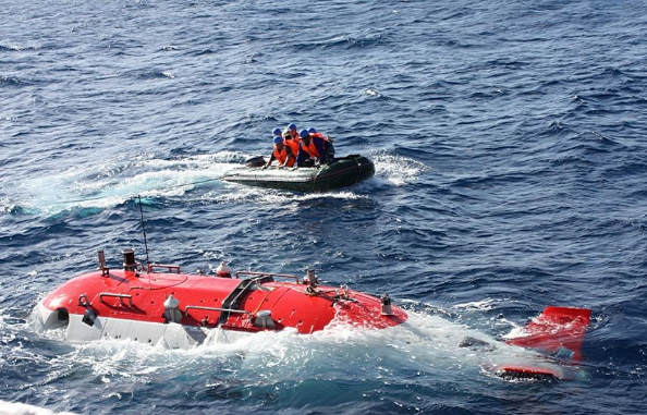 △2012年蛟龍號7000米級海試 蛙人正在靠近蛟龍號